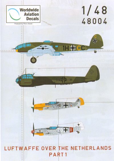 Worldwide Aviation Decals - WAD48004 - 1:48 | Luftwaffe over the Netherlands Part 1 (Messerschmitt Bf-109F-2, Bf-109G-6, Heinkel He-111H-3, Junkers Ju-88A-4) More | Aircraft decals (military) | Catalogue | £9.80 | ||